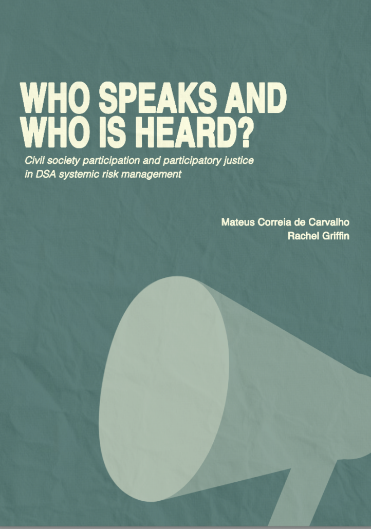 This post presents the report ‘Who speaks and who is heard?’ on civil society participation and participatory justice in DSA systemic risk management. In it, we examine the early practice of DSA participation to understand how it is unfolding in practice. Drawing on a qualitative empirical study with civil society actors of diverse backgrounds, perspectives, and activities, we traced the mechanisms used by those actors, their perceptions about the usefulness of different spaces of participation, the strategic considerations determining when, where, whether, and how to participate, as well as the obstacles and inequalities hampering meaningful participation. Regarding these inequalities, we propose to understand them as a matter of participatory justice, making some recommendations to improve the overall inclusiveness of DSA participation in systemic risk management.
